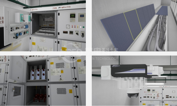 系統對開閉所區域進行三維全景仿真,并對關鍵設備,如銅排測溫,下水道濕度監控,進行數據可視化三維模擬,另外根據巡檢機器人現場情況進行實時三維模擬,達到人不在現場,卻如到達現場的效果,高效的進行智能巡檢工作。